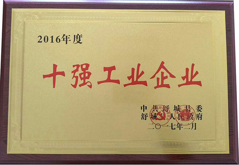 2016年、2017年我公司連續(xù)2年被舒城縣評(píng)為十強(qiáng)工業(yè)企業(yè)。